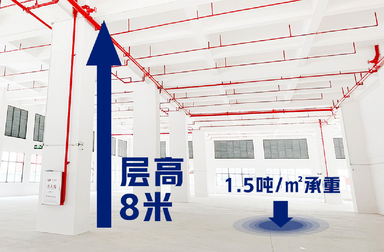 2#楼首层高至10米,原地面不限承重;楼上高至8米,承重1.5吨,为重型工业企业提供了理想的选择。